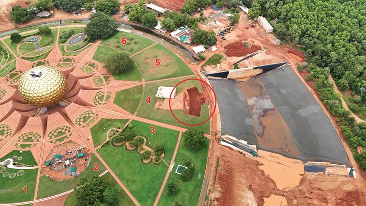 Adjacent to the Garden of Harmony, significant work has also taken place in the Garden of Youth. Excavation for the new underground drive-in storeroom has been completed, and preparations are now underway for the concrete flooring. Together, these developments reflect a growing momentum in the Gardens—an energy that is steadily building as we move toward completing all twelve Gardens by 21 February 2028, The Mother’s 150th birth anniversary.